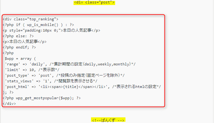 個別記事の上部にサイドバーとは異なる期間の人気記事(今回は今日一日の)を表示させる方法です。