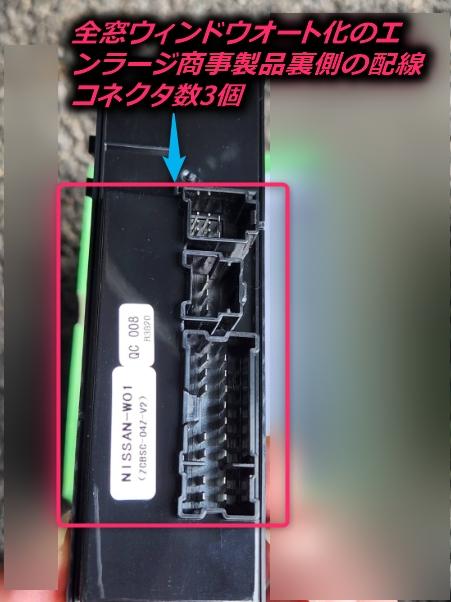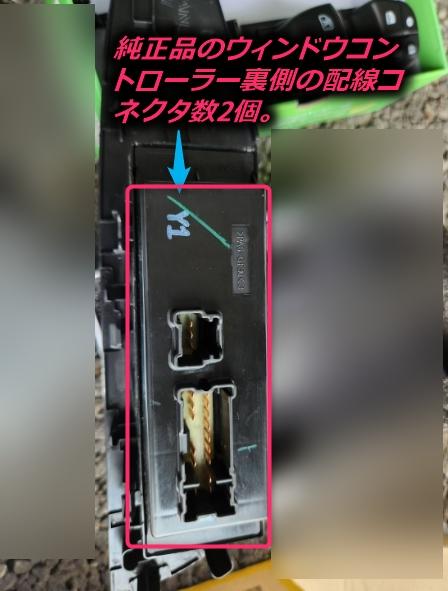 この2つのコネクタ接続部分に+1つされているコネクタ接続部分にて内部の回路にて、運転席のパワーウィンドウコントロールユニットにて全席のパワーウィンドウオールオート化を実現していると思われます。