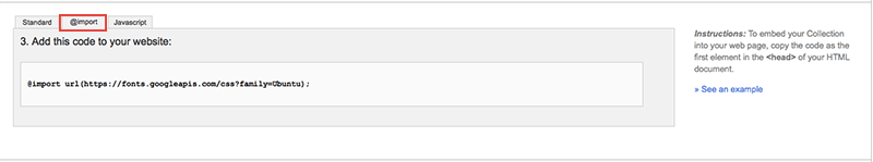 ここの@importに表示されたコードを自分のスタイルシート(CSS)の一番上の部分に記述します。