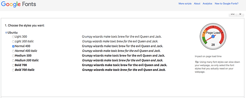 その後いくつかあるwebフォント(GoogleFont)の中で気に入ったものを選びます。