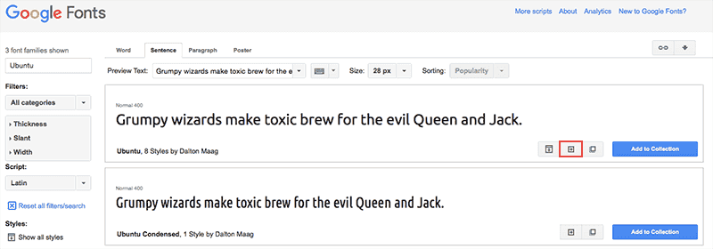 その後、webフォントを決めたら以下画像の赤枠内をクリックします。
