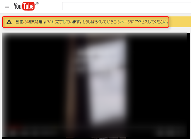 - 「現在動画の処理は○○%完了しています。もうしばらくしてからアクセスしてください。」