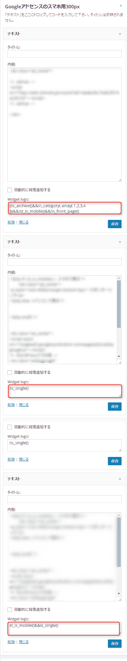 スマホ用アドセンス300というウィジェットと、