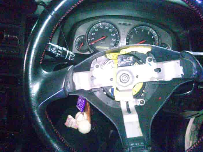 一番大事なのはエアバックが作動しないようにバッテリーの-端子は必ず外します。